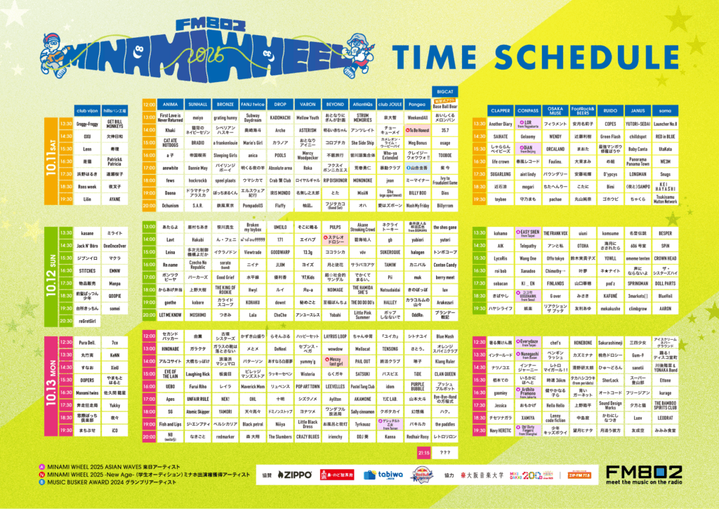 10/13(月・祝)『MINAMI WHEEL 2025』タイムテーブル解禁!